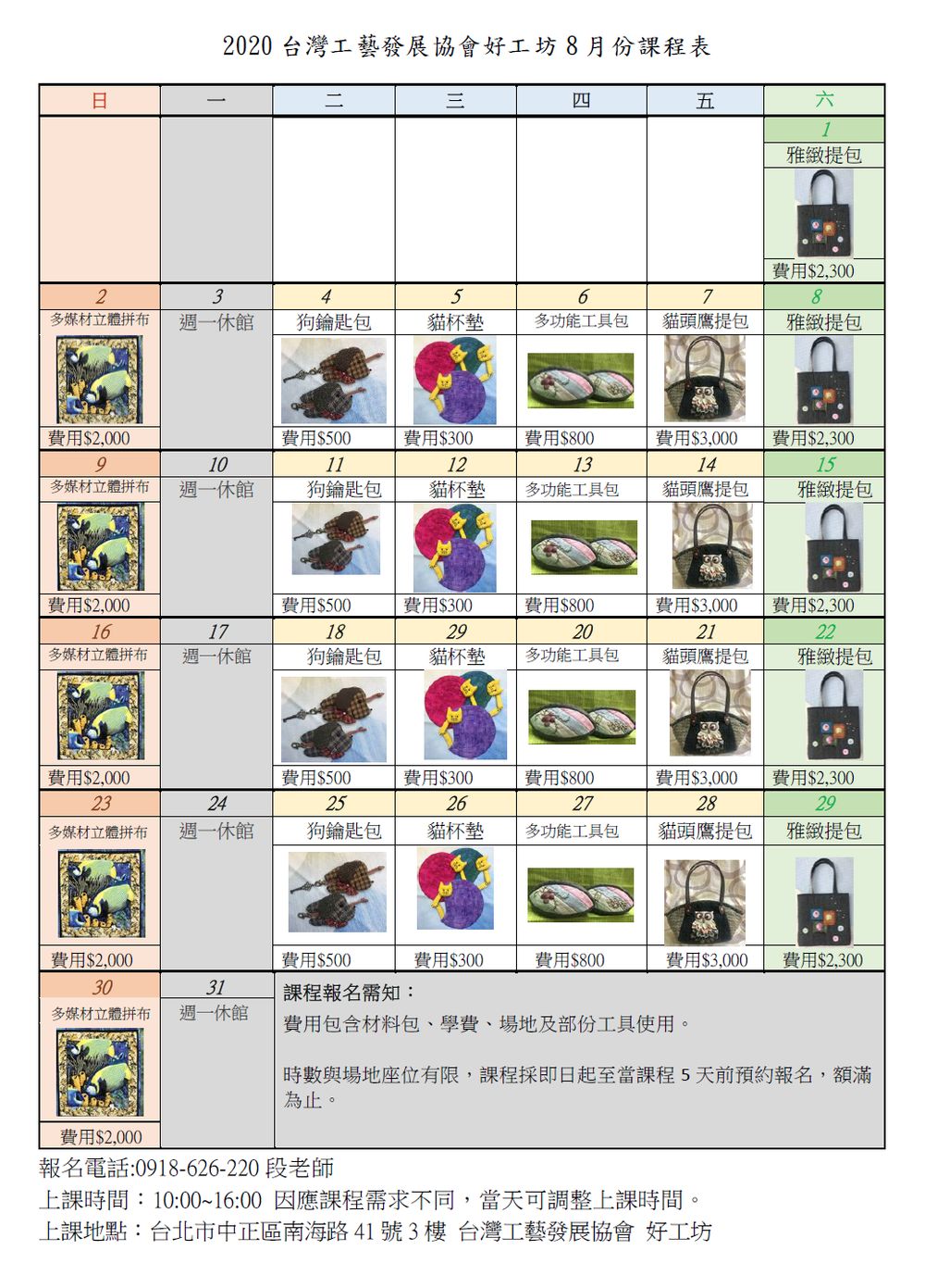 本會好工坊8月份課程